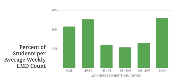 Figure 2 - Percent of students grouped by their average weekly LMD counts. Target was ≥25 LMD/week.