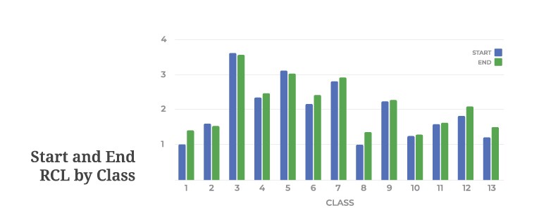 Figure 3 shows the average change by class. On average, classes showed an increase of 0.13 RCL, with a range of -0.1 to 0.4.