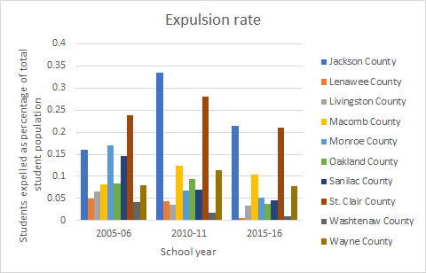 If you’re curious, you can use this student explusion database at MLive.com to search for how many students were expelled from your school district (and for what reason) during the 2015-16 school year.