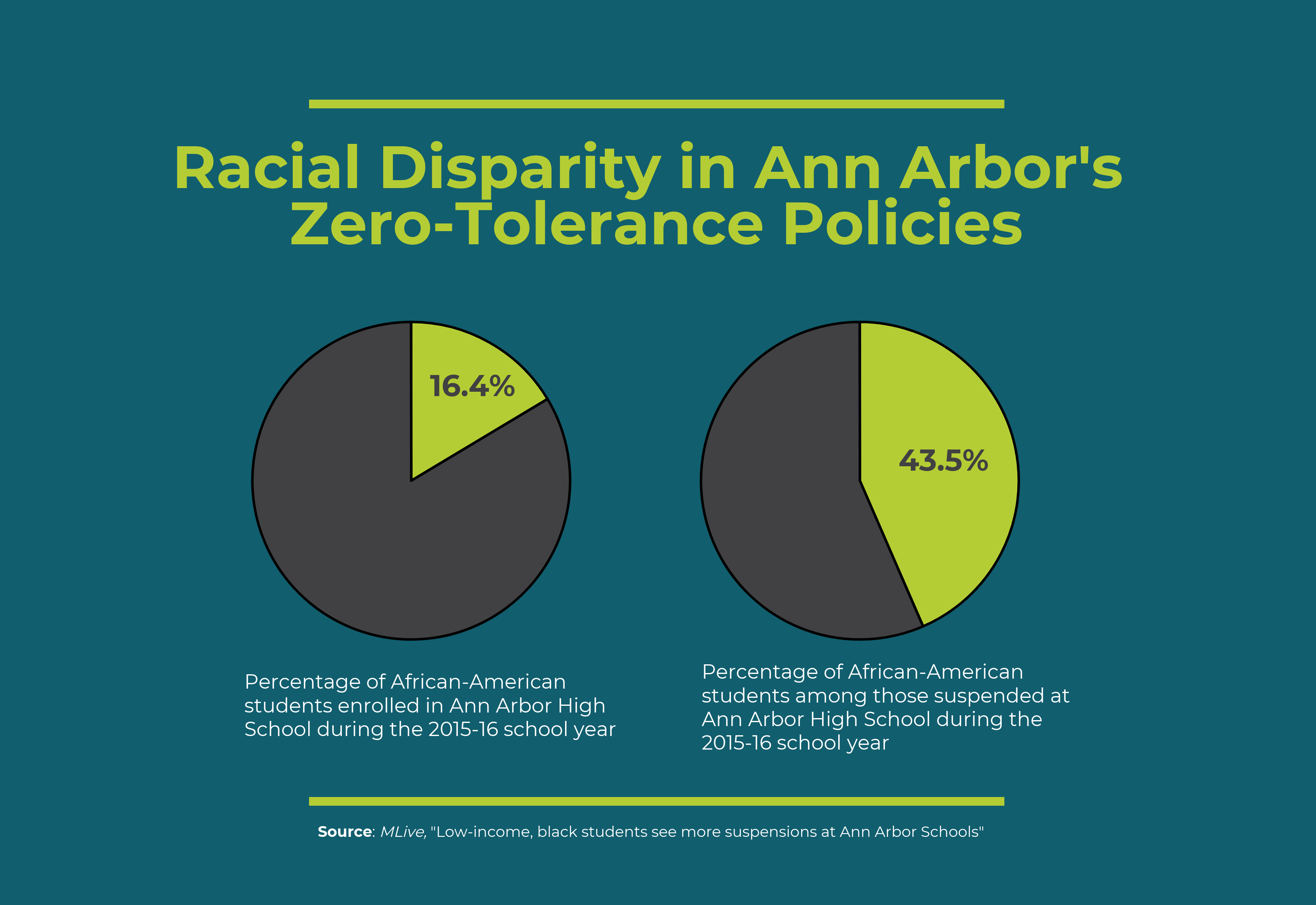 The same report found that African-American students constituted a disproportionate number of Ann Arbor Public School’s suspensions during the 2015-16 school year. Despite the fact that only 16.4 percent of Ann Arbor high school’s population was African American at this time, this group accounted for 43.5 percent of the year’s suspensions.