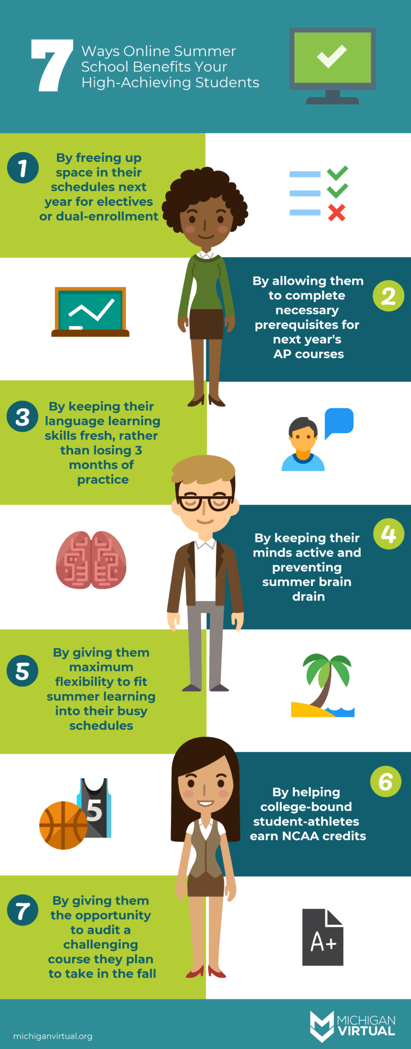 We hope you find this list helpful as you consider which types of students might benefit from summer learning programs this summer and what type of learning options you might offer them. We believe that self-motivated, high-achieving students can benefit from the flexibility and autonomy offered by online summer courses.That being said, we also find it important to clarify that not all online courses are created equal. Online learners need to be supported in order to succeed. That's why we work so hard to hire only highly qualified, Michigan-certified instructors to teach our online courses. That's why we encourage schools who partner with us during the summer to open up lab space for students to work if they need additional support from a trained mentor. That's why we offer the same quality content in our 10-week abbreviated summer courses as we do during our 18-week, full-semester courses.
