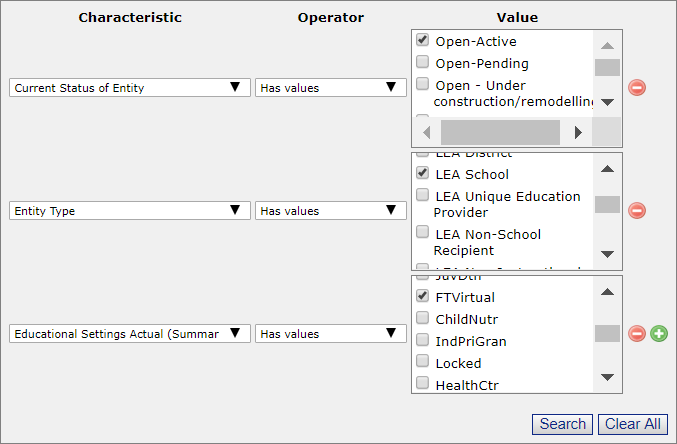There are now 44 LEA schools across the state that offer full-time virtual learning options to district students. A full list of these schools can be found by searching CEPI's website at CEPI Detailed Search by setting the search filters as below.Filter Settings to Identify Full-Time Virtual LEA Schools