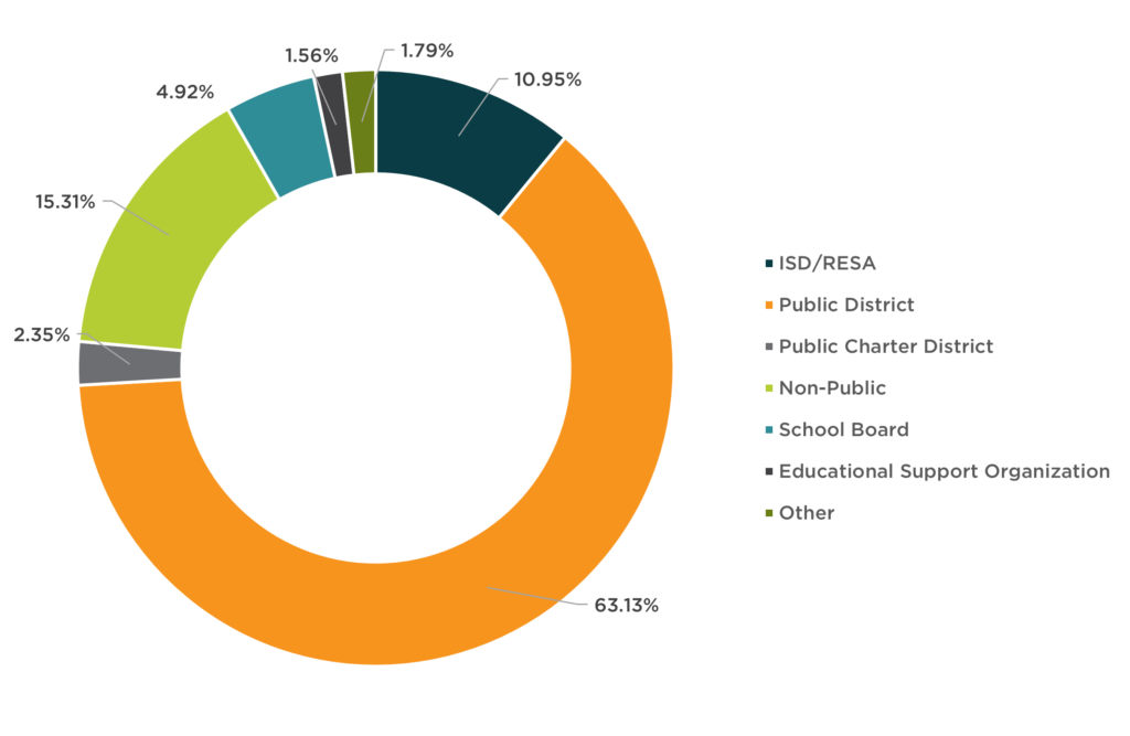 Educators were also asked to identify their primary educational environment. As detailed in Figure 1 below, well over half of educators were from public districts, with a considerable number from non-public schools/districts and ISDs/RESAs.