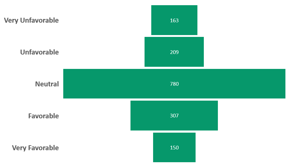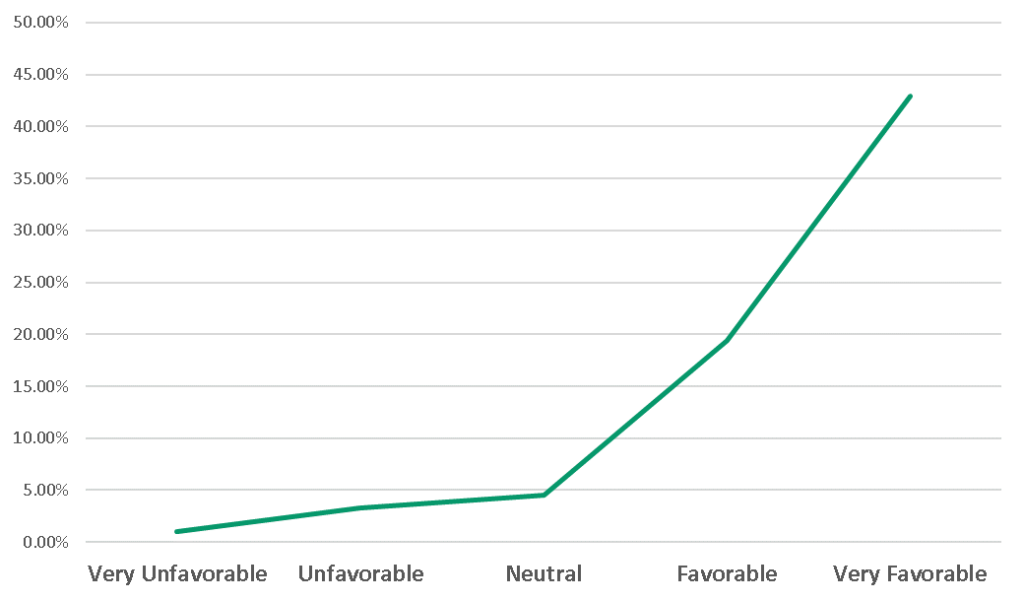Students that held Very Favorable opinions about AI utilized it almost 50% of the time on average, while students with Very Unfavorable opinions utilized AI only 1% of the time on average; this is a very large difference, fifty times more utilization reported between top and bottom bins.