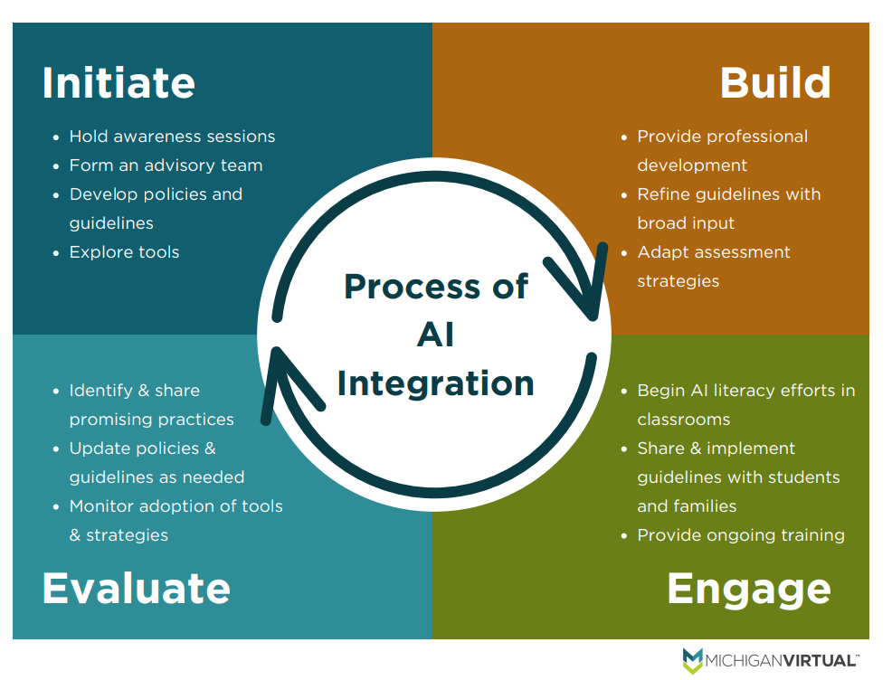 Develop guidelines and provide training for effective AI tool integration | Michigan Virtual’s AI Integration Framework |