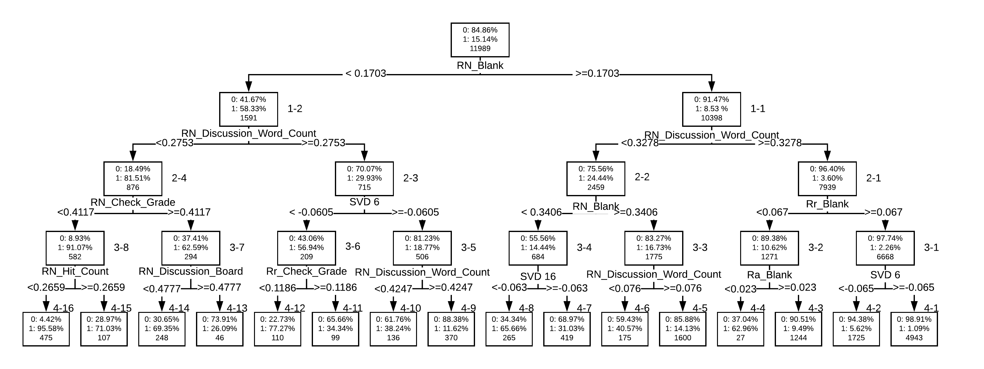 Student online discussion text was identified as an important predictor in this study. Combining behavioral with textual data as input variables further improved the model’s accuracy. However, in the data collection process, student replies also included content from their original posts, which increased data noise and took significant effort to ameliorate in the data processing. In addition to the discussion contents, interaction records under individual threads were analyzed via social network analysis and by tracking network pattern changes over time. The interactions of individual students were converted into numerical data and used as input variables in the construction of the predictive model.