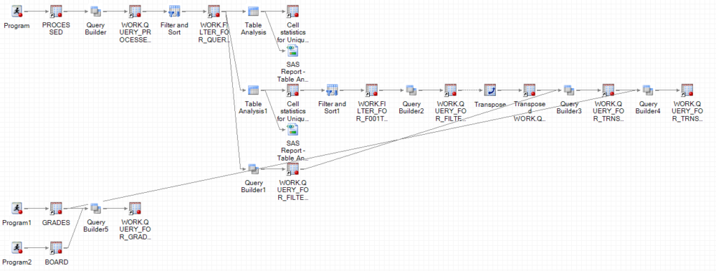 or course_name like '%culture%'SAS Enterprise Guide analytics application was used for LMS log data processing of behavioral and textual data. The behavioral data were extracted from the Blackboard activity accumulator which tracks click-by-click actions occurring in the Blackboard LMS. Textual data were extracted from blackboard discussion forums. Figure 1 shows the data processing flows for aggregating and deriving variables. In the first round of data cleaning, all behavioral data were aggregated by behavioral labels defined by Blackboard and stored in the activity accumulator table in Blackboard’s database system (please see Table 1). More detailed information about the database schedule and fields can be retrieved from the following link: http://library.blackboard.com/ref/3ce800bc-d993-40d2-8fc3-1cb792408731/index.htm. A unique ID, combining student ID and course ID, was used to link all three types of data sources together. In order to enhance the model’s generalizability, all behavioral frequencies were converted into “relative values.” Because the requirements of different courses may vary, how often students are required to access course materials or post to discussion forums for example, it is more meaningful to convert student’s participation level from absolute frequency numbers into relative values, such as student’s ranking and ratio by frequencies. Finally, in order to achieve the extended goal of early warning prediction, all input variables were computed from the beginning of the semester to the end of the eighth week in each semester. Table 1 shows the list of variables identified after two rounds of data processing and derived variable generation.