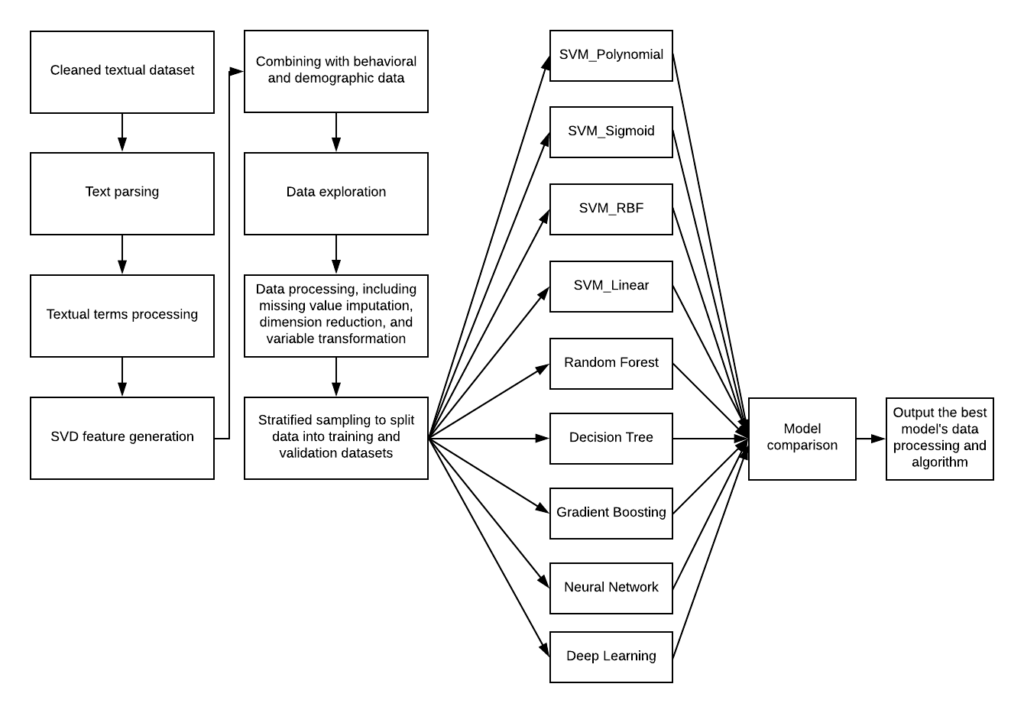 Arnold, K. E., & Pistilli, M. D. (2012, April). Course signals at Purdue: Using learning analytics to increase student success. In Proceedings of the 2nd International Conference on Learning Analytics and Knowledge (pp. 267-270). ACM.Bengio, Y. (2012). Deep learning of representations for unsupervised and transfer learning. Journal of Machine Learning Research, 27, 17-37. Retrieved from http://proceedings.mlr.press/v27/bengio12a/bengio12a.pdfDavies, R., Nyland, R., Bodily, R., Chapman, J., Jones, B., & Young, J. (2017). Designing technology-enabled instruction to utilize learning analytics. Techtrends: Linking Research & Practice To Improve Learning, 61(2), 155-161. doi:10.1007/s11528-016-0131-7Du, X., Yang, J., Shelton, B. E., Hung, J. L., & Zhang, M. (2018). Beyond bibliometrics: a systematic meta-review and analysis of learning analytics research. Manuscript submitted to publication.Dubuc, M. M., Aubertin-Leheudre, M., & Karelis, A. D. (2017). Relationship between academic performance with physical, psychosocial, lifestyle, and sociodemographic factors in female undergraduate students. International Journal of Preventive Medicine, 8-22Gašević, D., Dawson, S., Rogers, T., & Gasevic, D. (2016). Learning analytics should not promote one size fits all: The effects of instructional conditions in predicting learning success. The Internet and Higher Education, 28, 68–84. Retrieved from https://www.researchgate.net/publication/312846891_Piecing_the_Learning_Analytics_Puzzle_A_Consolidated_Model_of_a_Field_of_Research_and_PracticeGreller, W., & Drachsler, H. (2012). Translating learning into numbers: A generic framework for learning analytics. Journal of Educational Technology & Society, 15(3), 42-57Hall, P., Phan, W., & Ambati, S. (2017). Ideas on interpreting machine learning. Retrieved from the O’Reilly website: https://www.oreilly.com/ideas/ideas-on-interpreting-machine-learning.Hung, J. L., Hsu, Y. C., & Rice, K. (2012). Integrating data mining in program evaluation of K-12 online education. Journal of Educational Technology & Society, 15(3). 27-41Pennebaker, J.W., Boyd, R.L., Jordan, K., & Blackburn, K. (2015). The development and psychometric properties of LIWC2015. Austin, TX: University of Texas at Austin.Pennebaker, J. W., Chung, C. K., Frazee, J., Lavergne, G. M., & Beaver, D. I. (2014). When Small Words Foretell Academic Success: The Case of College Admissions Essays. PLoS ONE, 9(12), 1-10. doi:10.1371/journal.pone.0115844Powers, D. M. (2011). Evaluation: from precision, recall and F-measure to ROC, informedness, markedness and correlation, Journal of Machine Learning Technologies, 2(1), 37–63.Raczko, E., & Zagajewski, B. (2017) Comparison of support vector machine, random forest and neural network classifiers for tree species classification on airborne hyperspectral APEX images. European Journal of Remote Sensing, 50(1), 144-154.Schmidhuber, J. (2015). Deep learning in neural networks: An overview. Neural Networks, 61 85–117. https://arxiv.org/pdf/1404.7828.pdfSmolyakov, V. (2017). Ensemble learning to improve machine learning results [Blog post]. Stats and Bots. Retrieved from https://blog.statsbot.co/ensemble-learning-d1dcd548e936Tausczik, Y. R., & Pennebaker, J. W. (2010). The psychological meaning of words: LIWC and computerized text analysis methods. Journal of Language and Social Psychology, 29(1), 24-54. Retrieved from https://www.cs.cmu.edu/~ylataus/files/TausczikPennebaker2010.pdf