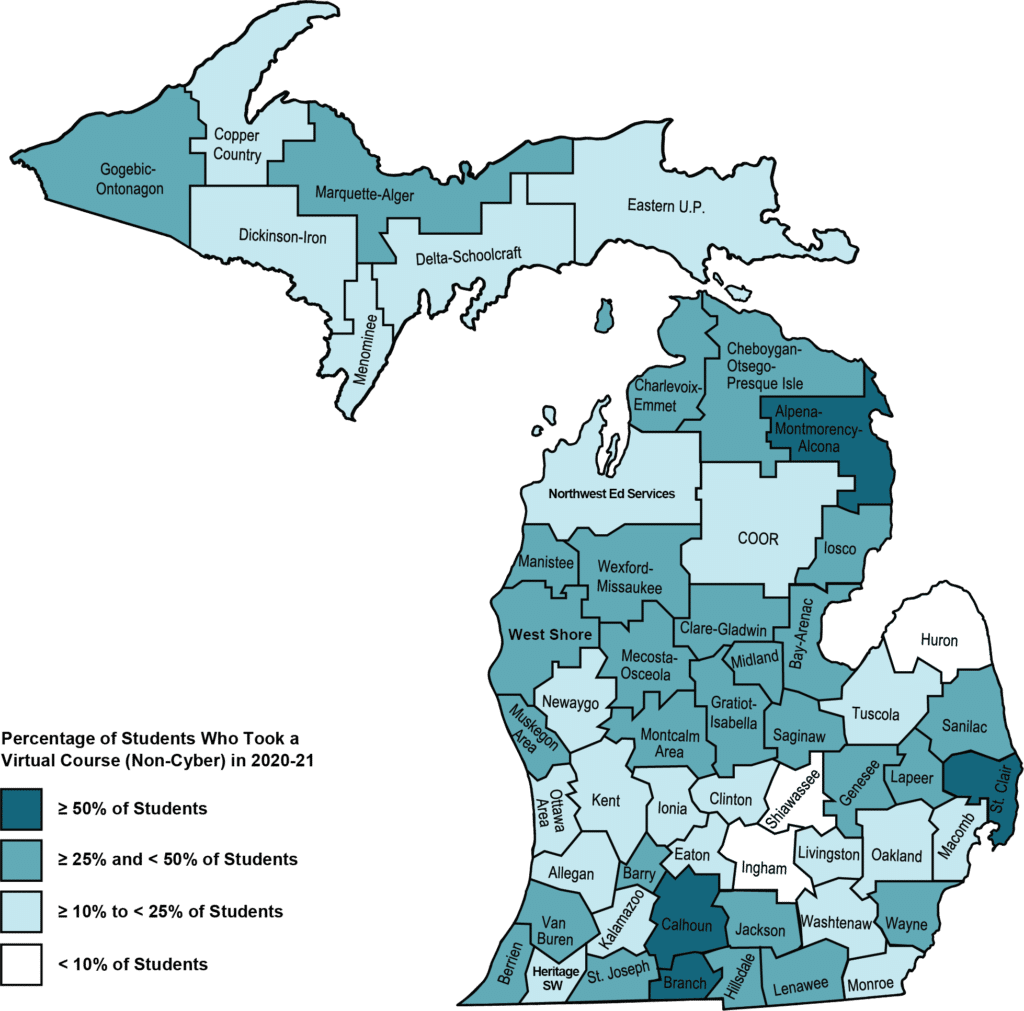 418,513 K-12 students took at least one virtual course which represented 29% of Michigan public school students.