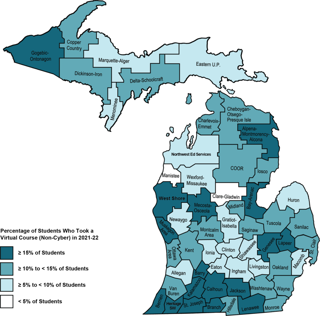 Over 208,000 K-12 students took at least one virtual course which represented 14% of Michigan public school students.