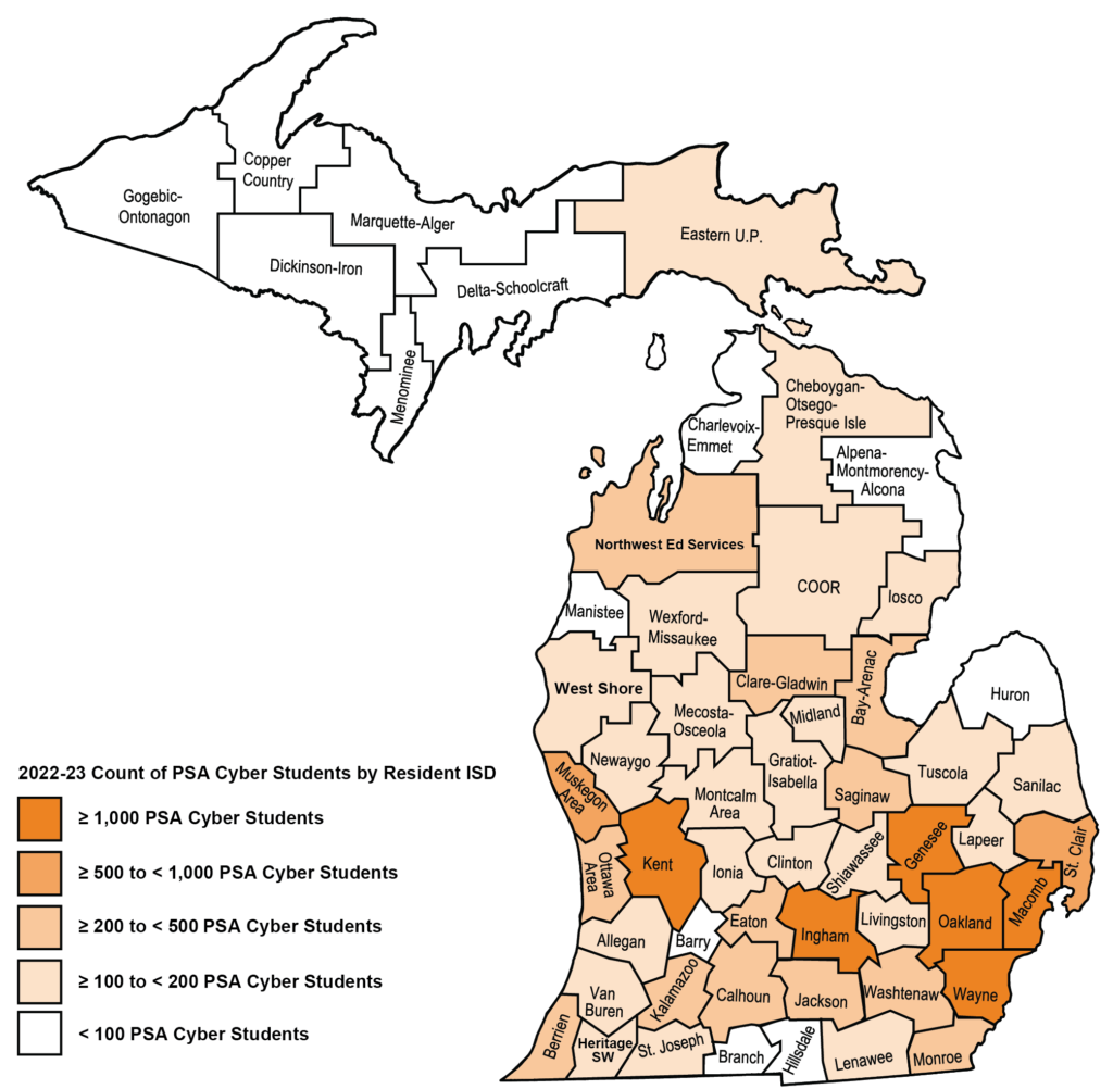 607 school districts reported at least one virtual enrollment. This represented 68% of Michigan school districts.