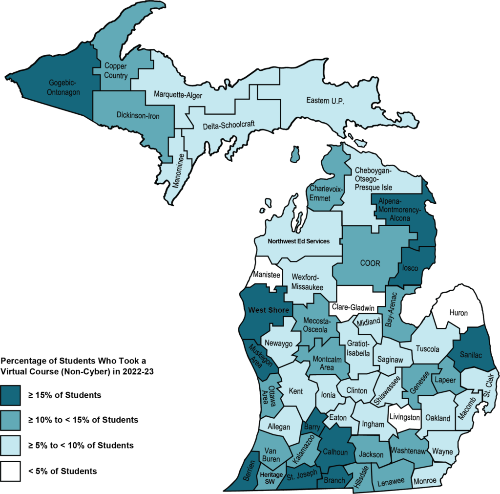 Over 159,000 K-12 students took at least one virtual course which represented 11% of Michigan public school students and 12% of Michigan K-12 students.