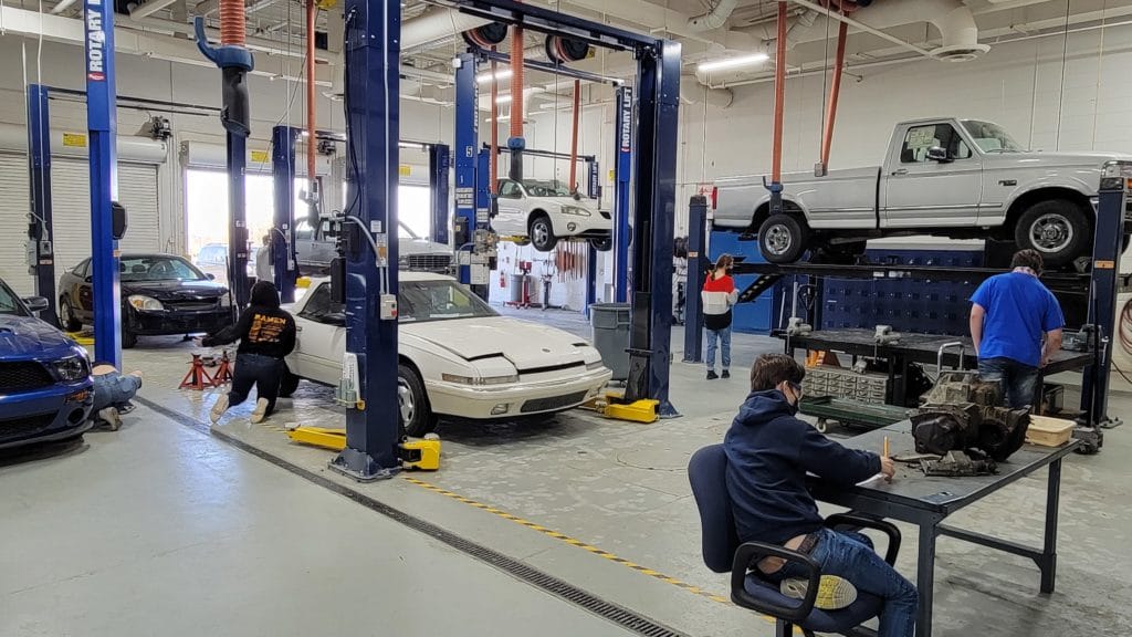 Oxford’s Auto Mechanics CTE program is designed to prepare students in grades 9-12 for a career in the area of automotive technology. Just like in the EMT program, students learn from instructors that have experience in the field. In fact, CTE instructors must have at least 4,000 hours of industry experience in order to be certified to teach. Students split their time between classroom-based learning and hands-on learning on the shop floor. During the MVLRI research team’s visit, the auto shop was noisy and busy as students checked brakes, used diagnostic testing equipment, and implemented shop practices with cars donated either by the Oxford community or by General Motors. In order to participate in the program and handle equipment, students must be safety certified. And after their third year, students pursuing an ASE certification sit for their state certification exam.