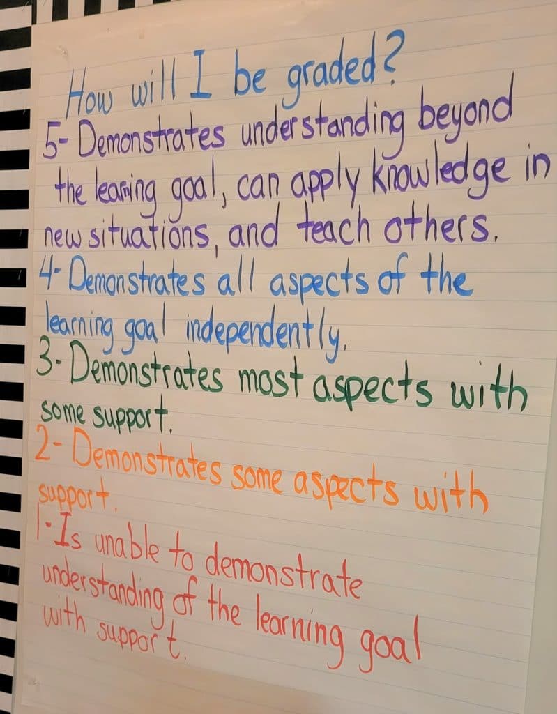 Another building block of the CLK Engage program is their student portfolios—a collection of evidence of learning and documented academic growth. Teachers use the portfolios to not only share student growth with parents throughout the year and during parent conferences but also with students, enabling them to reflect on their own learning. Rather than using traditional letter grades or BE (beginning), DE (developing), and SE (secure), the Engage program uses a 5-point proficiency scale for grading and report cards. In addition to using the scale to communicate to students about their progress, teachers have found that using the 5-point scale is very helpful during parent conferences. Some teachers have even had students use their portfolios to share about and evaluate their own learning during parent conferences. The portfolios as well as student involvement in their learning and in conferences are evidence of some intentionality to develop student agency—when students are active participants in their education, taking responsibility for their learning.