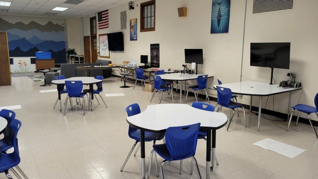 At first, Washington Middle School seems pretty traditional. However, after exploring the school a bit further and talking to their new principal, Joel Asiala (former principal at CLK’s Horizons Alternative High School), it is evident that they are poised to make a shift towards creating a more student-centered learning model for students in grades 6-8. Just like at the elementary school, signs hang outside each classroom inviting students to “Ask Me About” with three ideas listed, encouraging student-teacher conversations and relationship building. Throughout the hallways, banners encourage students to exhibit positive behavior. In the robotics classroom, students learn programming and coding skills. Tables are arranged to encourage group work as each is equipped with a large screen, giving students the ability to project their ideas onto the screen to share and discuss with others. This robotics program gives students the ability to follow a STEM track—to take an interest they may have developed in elementary school, grow it further, and then continue on with it in high school.