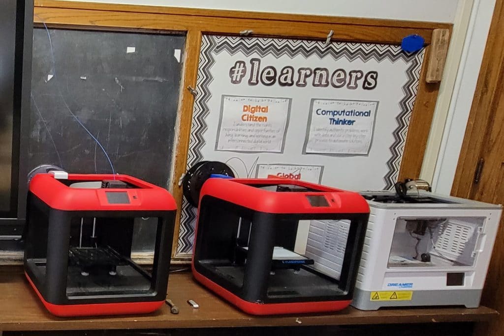 One of the more student-centered aspects of the middle school, and what Asiala described as their jumping-off point, are their makerspaces. They have three different makerspaces available to both students and staff: laser engravers, 3D printers, and Cricut machines. Asiala said the rooms have been very busy—he can almost always hear the whir of the 3D printers and machines! These makerspaces have allowed students to take their ideas and turn them into creative projects. Some students choose to use the makerspaces for their quarterly marking period (MP) projects which increase in complexity and student-centeredness throughout the year. For example, in MP1, the project is as determined by their teacher. For MP2, students are able to choose how they want to present the information. In MP3, the project is cross-curricular—students choose two subjects they want to integrate and the project must demonstrate learning in both subjects. The project counts as a grade for each class, with teachers grading their subject-specific components. And in MP4, the project must be cross-curricular across all subject areas. Students must determine the subject area they want to focus on (e.g., science, social studies, ELA, math, etc.) but then determine how to incorporate the other subjects into their project. These quarterly projects serve as a jumping-off point for the middle school into project-based learning as well as allowing students to incorporate their own interests into projects, giving them both voice and choice.